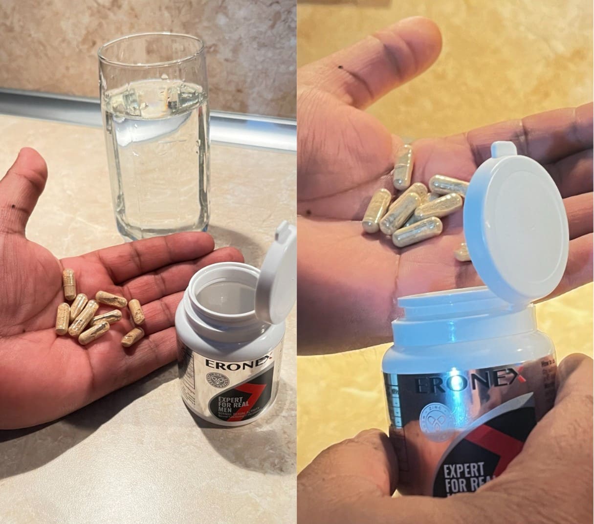 Altfel spus, prin simpla administrare a capsulelor Eronex, dimineața și seara, veți observa o îmbunătățire a circulației sângelui în organism, inclusiv către organele pelvine. Veți avea din nou erecție regulată, libido crescut și rezistență mai mare, rezultatul fiind observat de majoritatea pacienților în doar câteva săptămâni.